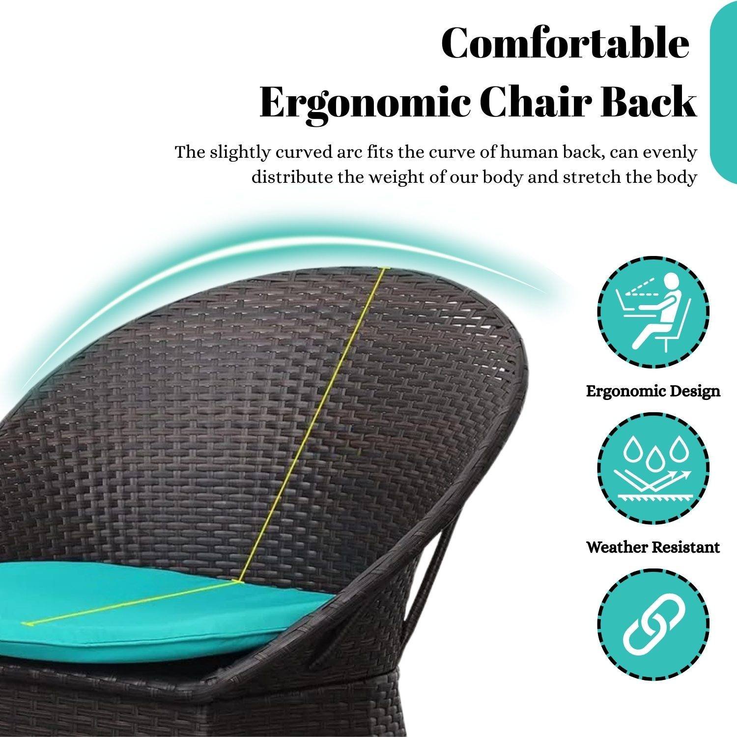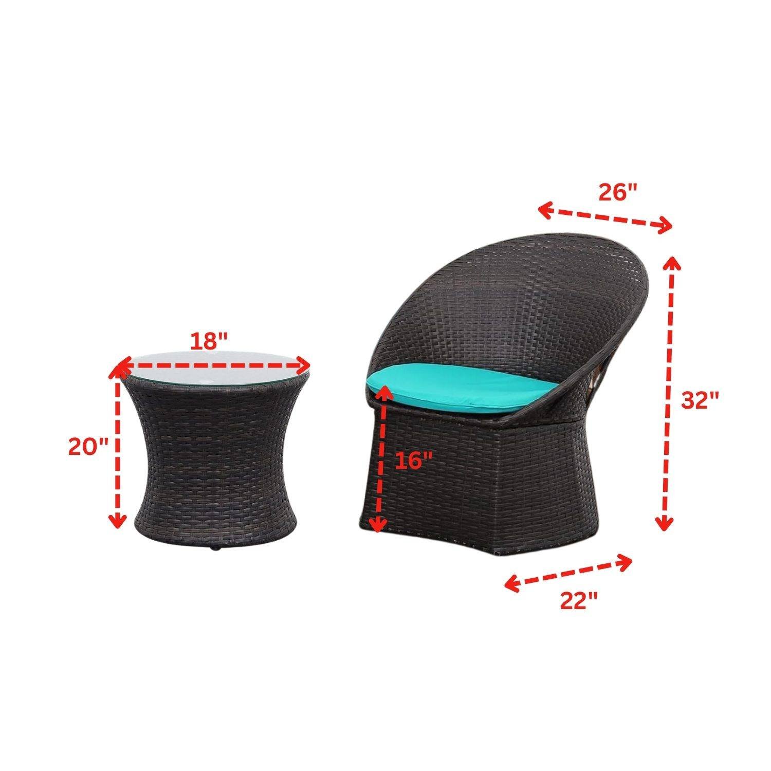 3-Piece Rattan Wicker Patio Set (Dark Brown & Sky-Blue)