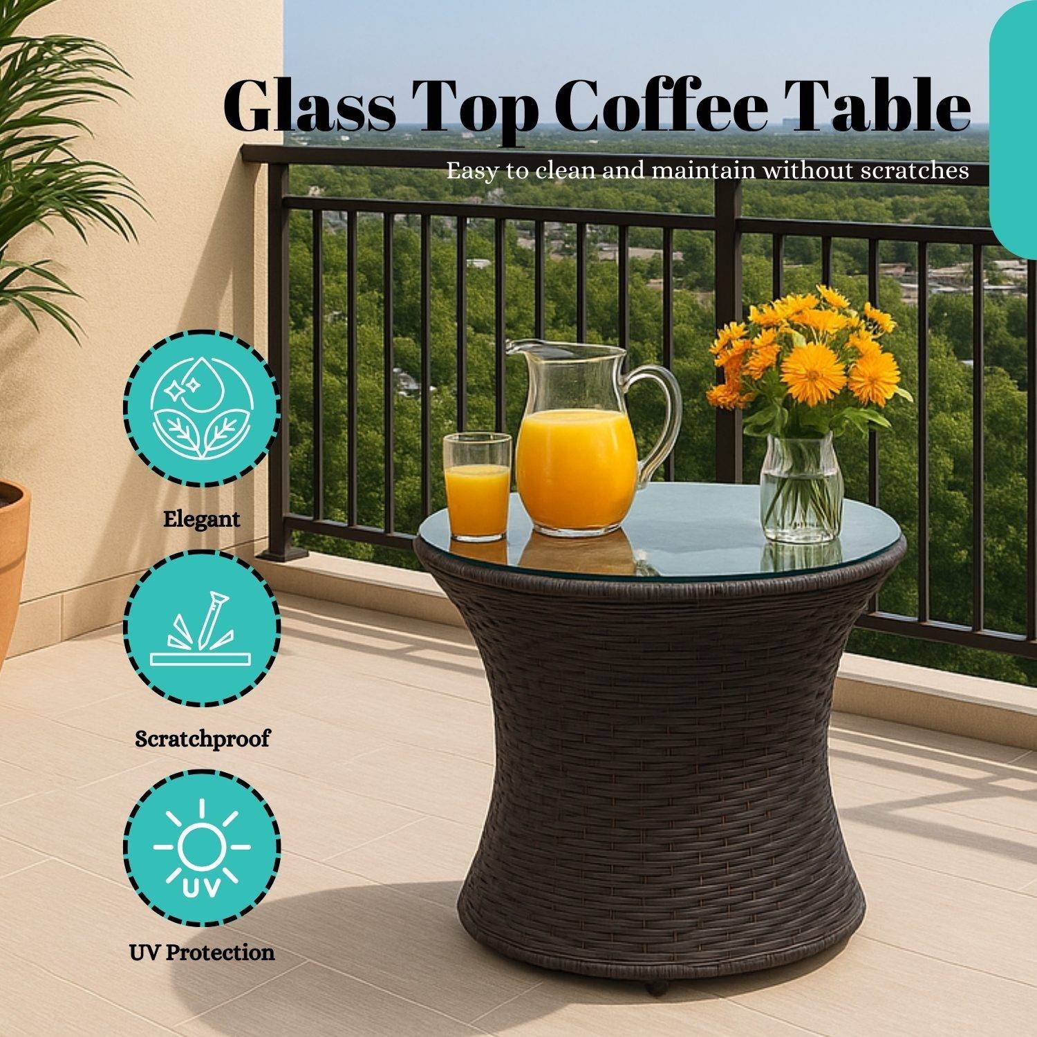 - Complete Relaxation Set : Includes comfortable chairs and a center table with a glass top—perfect for relaxing on your balcony, patio, or garden.