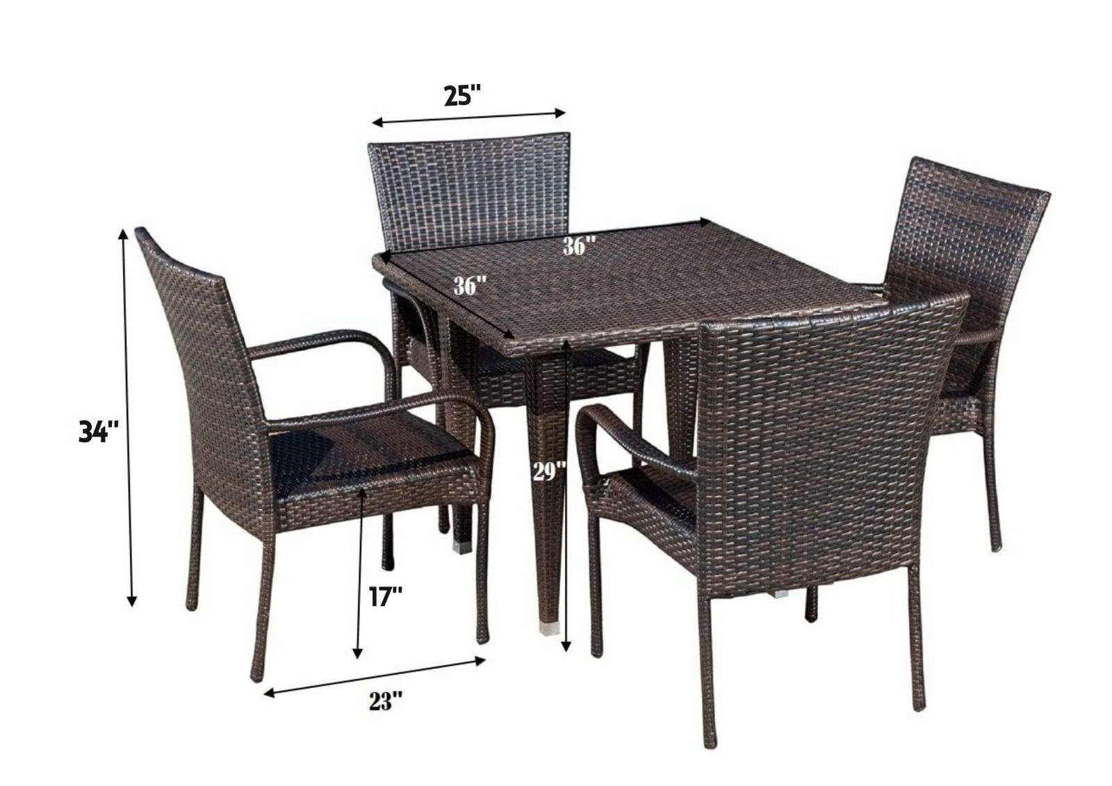 30 reviews for 5-Piece Patio Dining Set, 4 Seats + 1 Square Table (Dark Brown)
