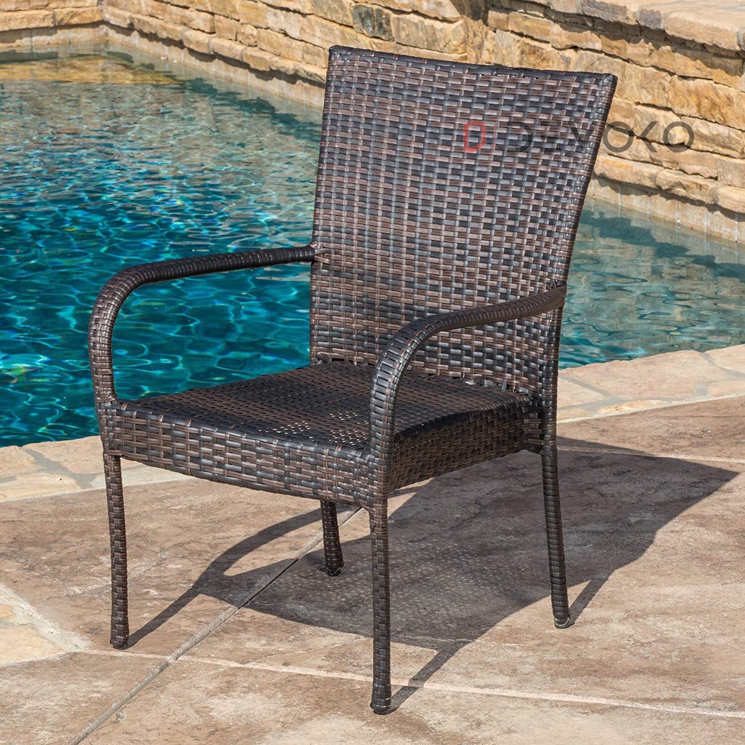 This DEVOKO 5-Piece patio dining set is ideal for your family/friends gathering, party, dinner, conversation and other activities. Made of high-quality frame with excellent powder-coated finish and tightly hand-woven rattan, it offers supportive structure and stands up to outdoor elements for reliable long-lasting strength. This set includes one square wicker dining table and four chairs. Featuring clean lines and hand crafted resin wicker that lends this dining chair a warm, inviting feel which is elegant and stylish in your garden or yard. premium rattan back & smooth powder-coated armrests provide with nicely seating experience. Impress your guests with this Devoko dining set that brings your outdoor décor to the next level. Don’t hesitate to take them home.