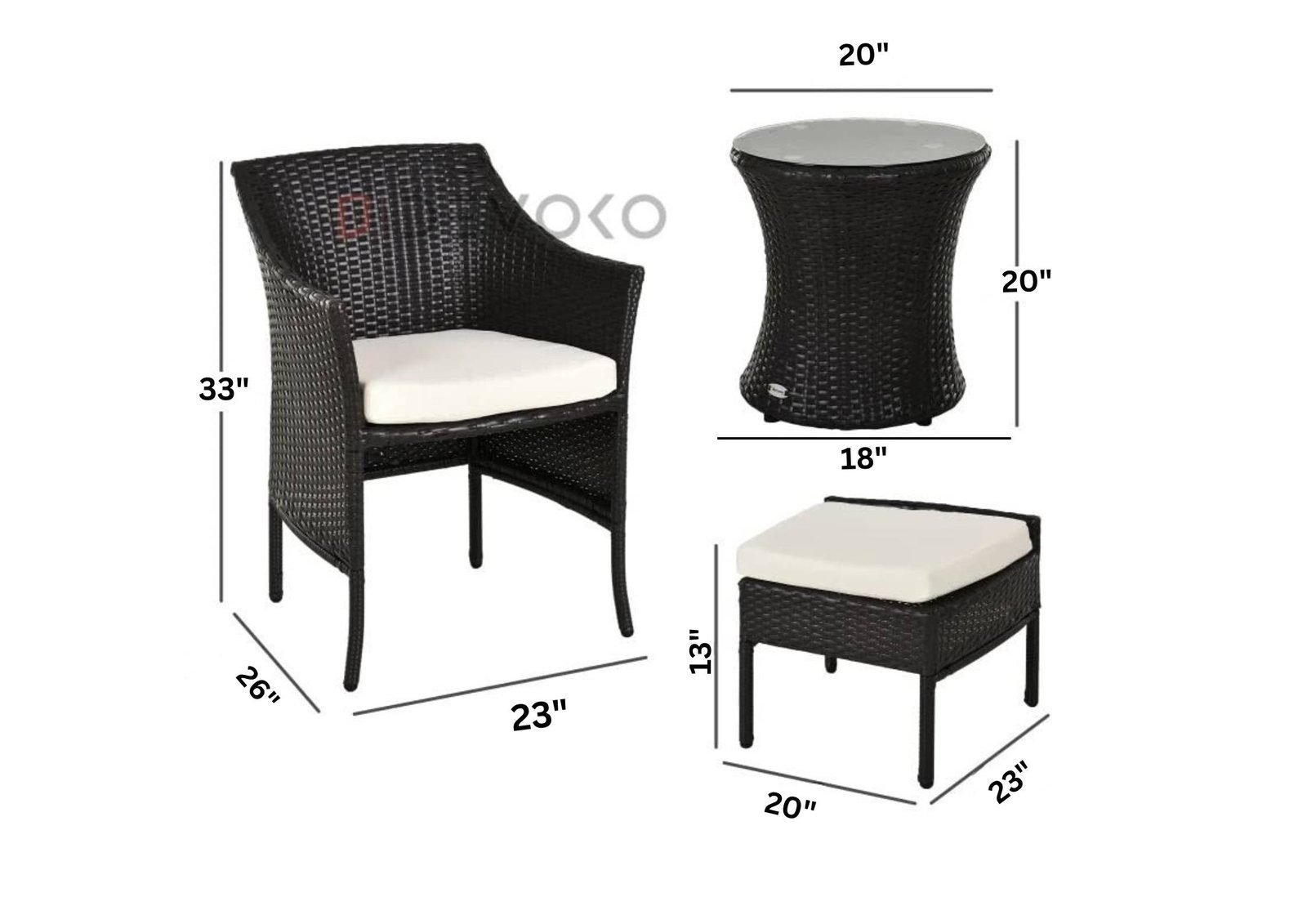 - Chair Dimension: 23″Lx26″Wx33″H