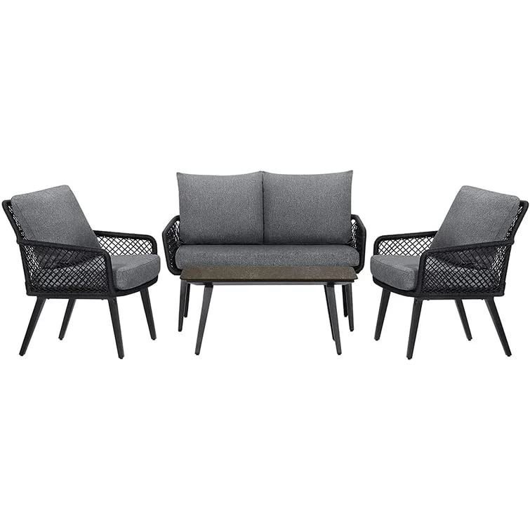 DEVOKO 4-Seater Outdoor/Indoor Sofa Set with Center Table & Cushion Chairs (Black/Grey)