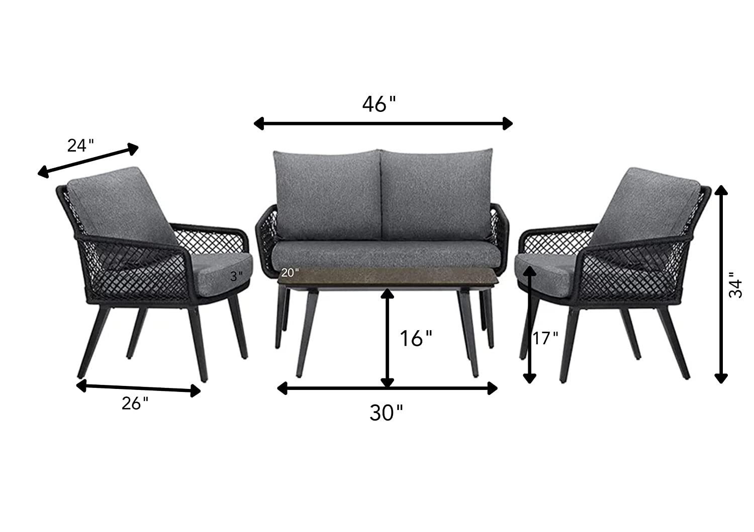 • 2 Single Seater Chair Dimensions: 24″L×26″W×34″H