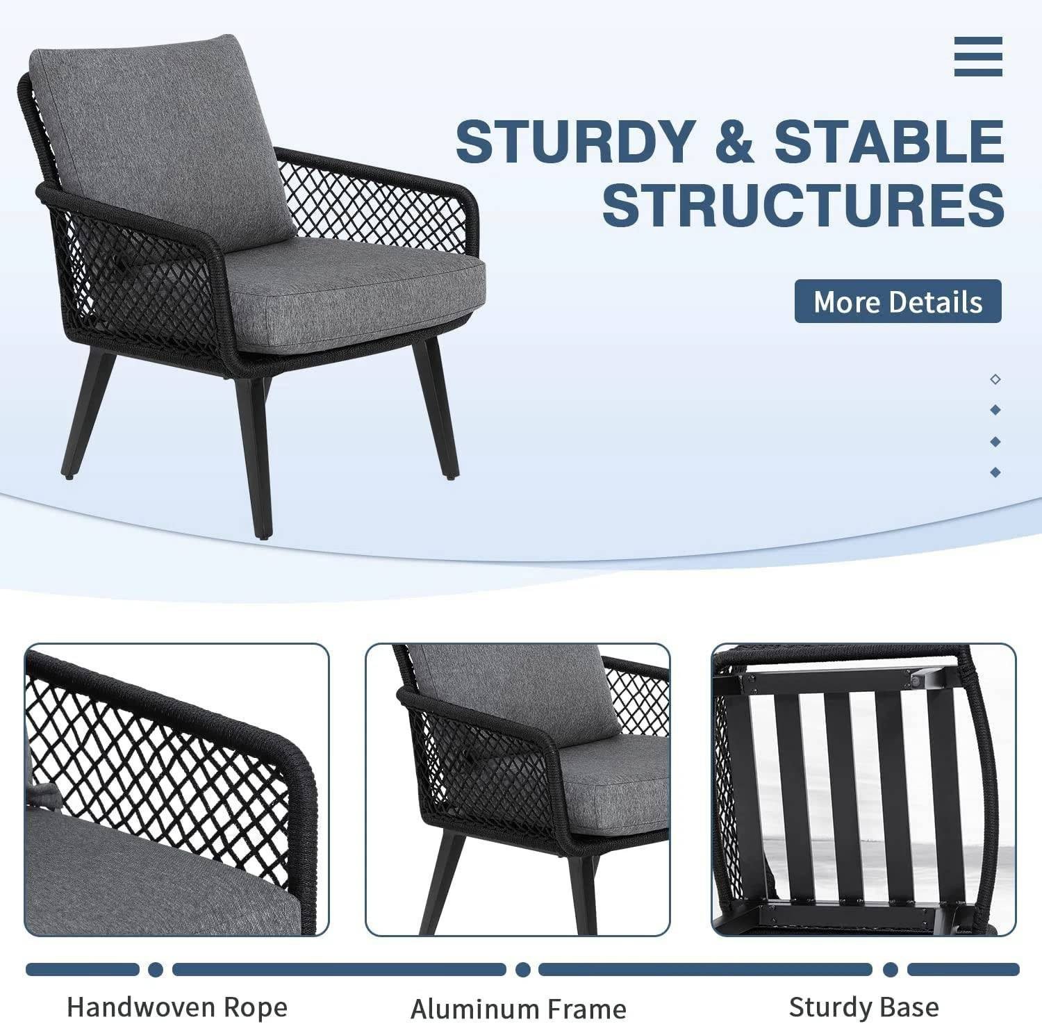 The quality of the rope material is exceptional, providing both durability and a luxurious feel. The cushions are incredibly plush and cozy, creating a relaxing atmosphere perfect for lazy afternoons or evening gatherings.