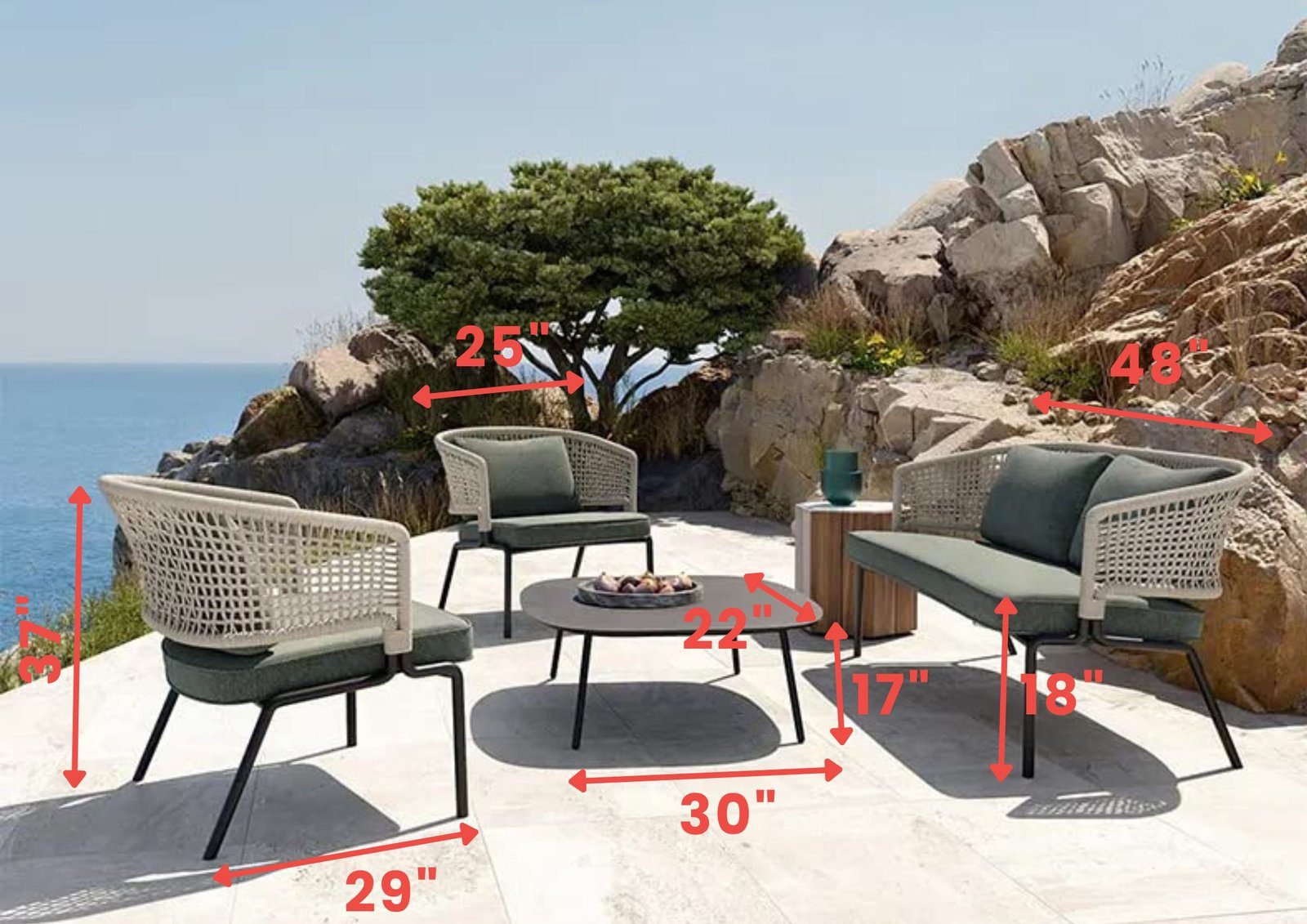 26 reviews for DEVOKO 4 Seater Patio Rope Sofa Set – Platinum/Dark Green