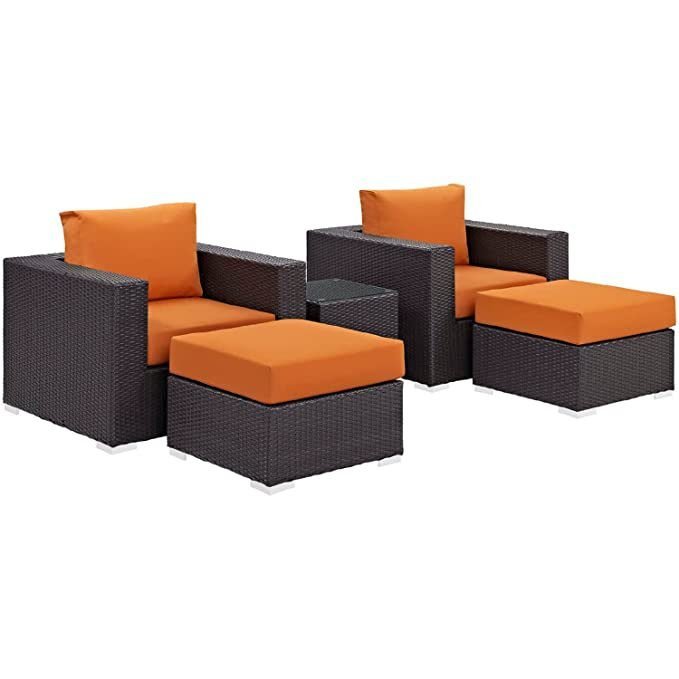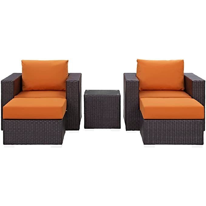 DEVOKO 5-Piece Outdoor Rattan Sofa Set (Dark Brown & Orange)