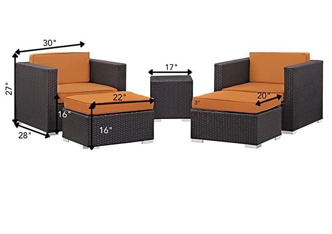 26 reviews for DEVOKO 5-Piece Outdoor Rattan Sofa Set (Dark Brown & Orange)
