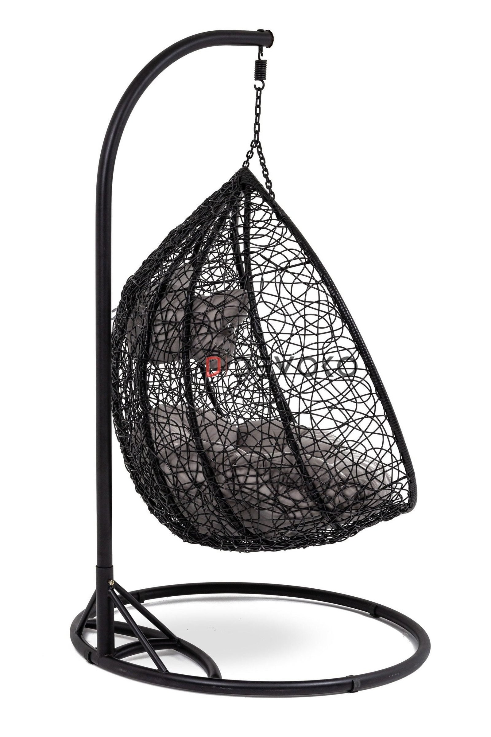 Great for patios, porches, or lawns, this hanging egg chair is a chic seat. Durably constructed to be weather-resistant, it features a powder-coated iron frame wrapped in resin wicker polyethylene rattan. No need to worry about splinters or slivers, as this material stays smooth to the touch, unlike traditional natural rattan. The soft cushion and headrest are made of Cotton with a soft polypill core. The cushion and headrest are easy to keep clean and designed to withstand the elements. The simple 2-piece assembly and included hardware make it easier to put this chair together. Plus, this set includes a durable powder-coated iron stand with an attractive powder-coated finish that resists rusting for greater longevity. The stand and chair can be set up in any outdoor living space for a trendy seating option that everyone will love.