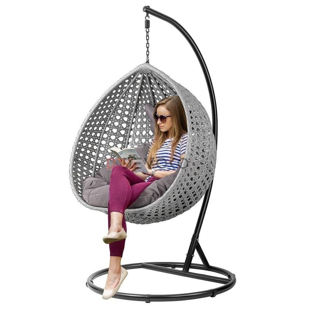 - Easy Assembly : Swing chair requires simple assembly; hardware is included; Comes with headrest pillow, seat cushion, and hanging chair with stand.